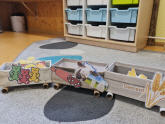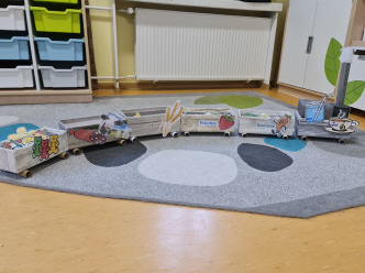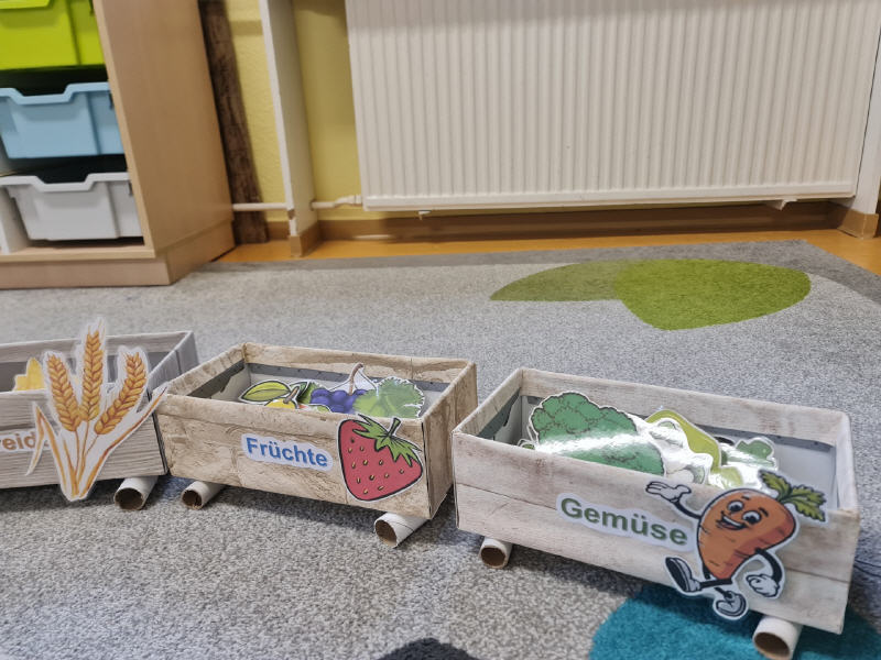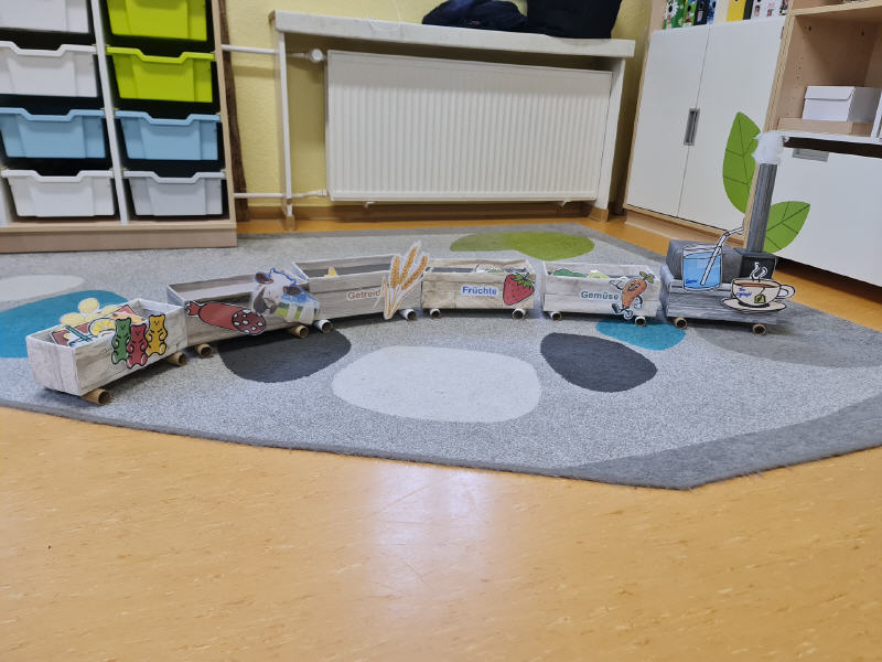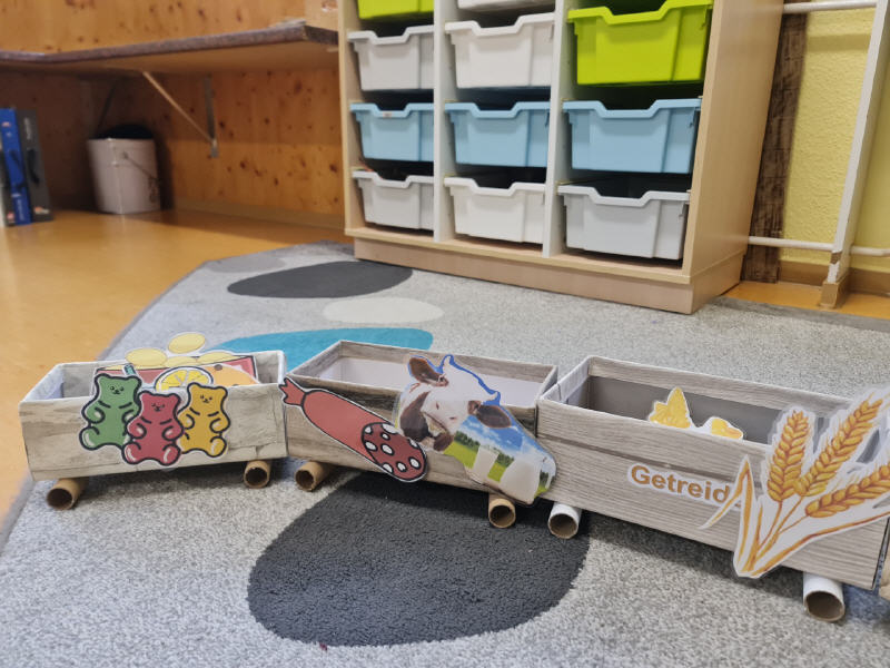 Dabei darf Anschauungsmaterial, wie zum Beispiel dieser Zug, in den die Kinder