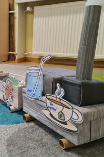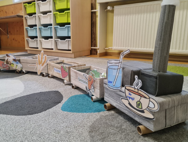 Dabei darf Anschauungsmaterial, wie zum Beispiel dieser Zug, in den die Kinder